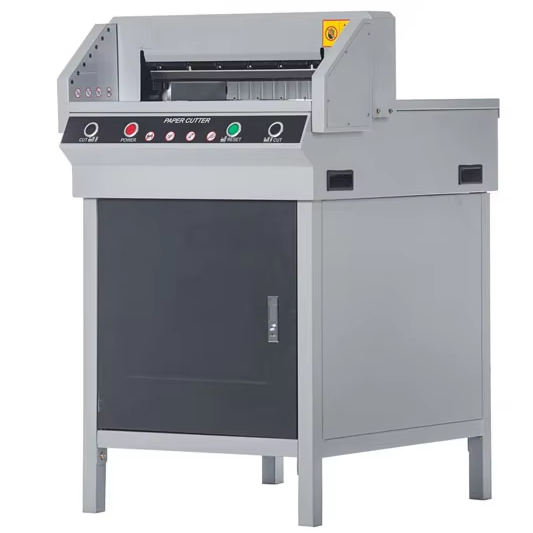 Grâce à sa largeur de coupe de 450 mm, ce massicot électrique est adapté aux formats A3, A4 et autres dimensions personnalisées. Sa lame de haute qualité garantit une découpe nette, régulière et durable, même sur des piles de papiers épaisses.