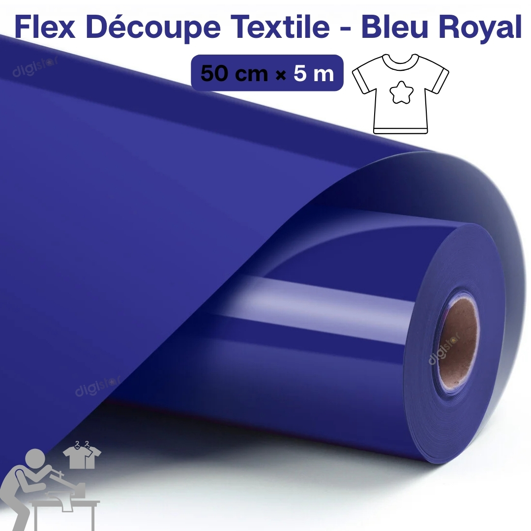 Le flex de découpe textile Bleu Royal 50 cm x 5 m est un vinyle thermocollant haute qualité spécialement conçu pour la personnalisation textile. Il permet de créer facilement des designs professionnels sur différents types de vêtements.
