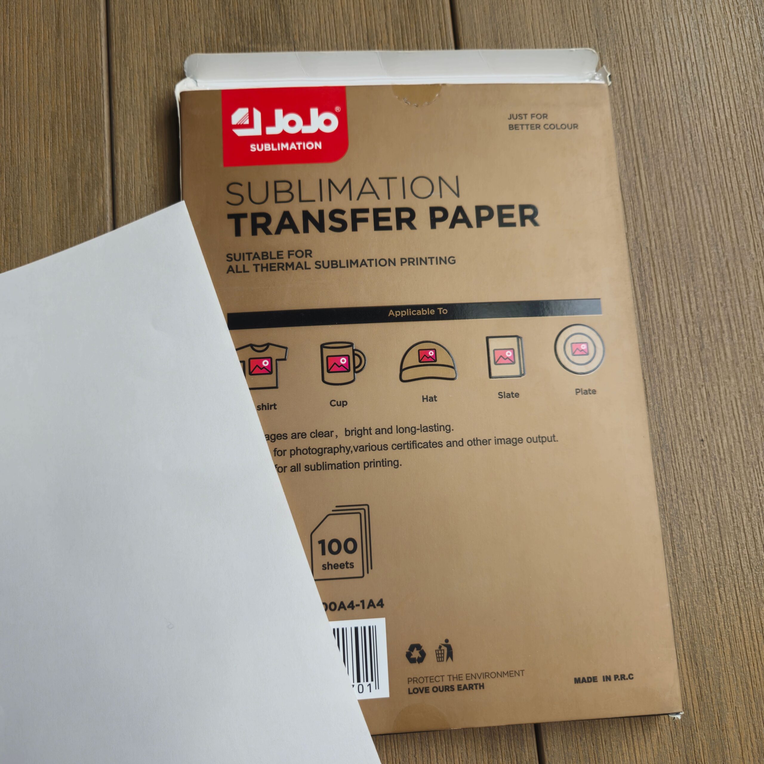 Le papier de sublimation A4 JoJo est spécialement conçu pour le transfert thermique haute définition sur différents supports compatibles sublimation. Il garantit des couleurs vives, un transfert précis et un séchage rapide, idéal pour les professionnels de la personnalisation.