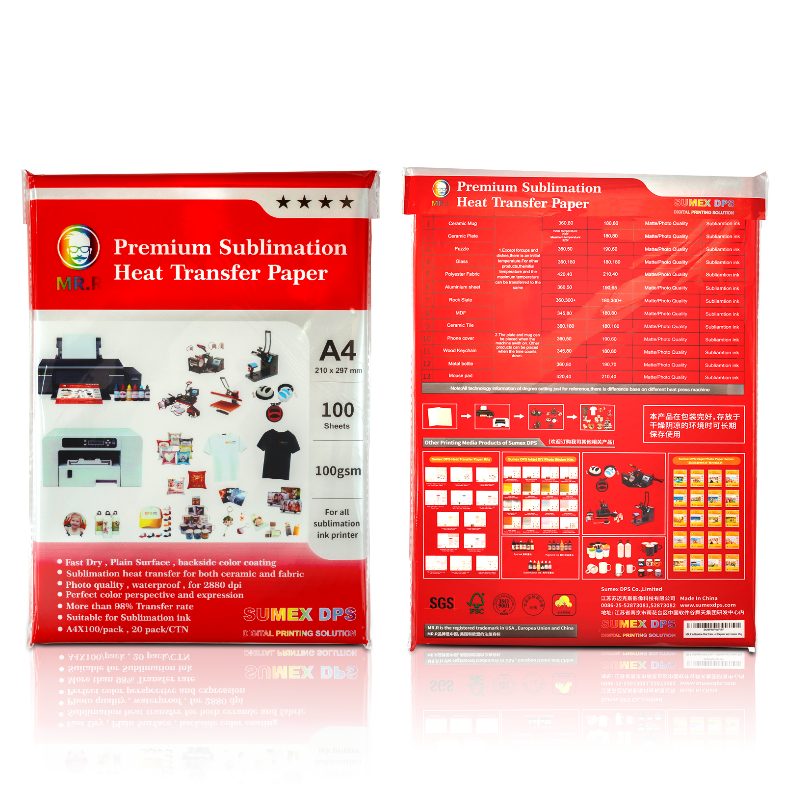 Le Papier Sublimation Premium MR.R A4 est conçu pour offrir des impressions haute définition, éclatantes et durables sur tous vos supports de sublimation. Idéal pour les tasses, textiles, plaques, puzzles et objets personnalisés, il garantit une transfert précis et homogène à chaque utilisation.